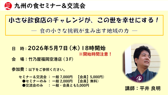 ◯セミナー参加費 2,000円(九州の食の会員は【無料】で参加できます)