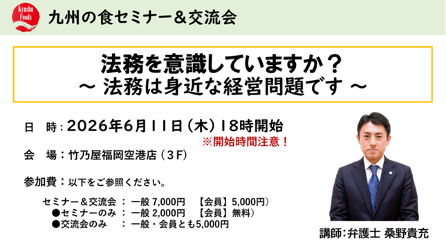◯セミナー参加費 2,000円(九州の食の会員は【無料】で参加できます)